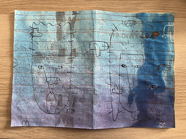 Les couvertures du numéro 8 sont réalisées au crayon à papier, réhaussé d’encre de Chine noire, de stylo Bic bleu et d’encre de Chine blanche.