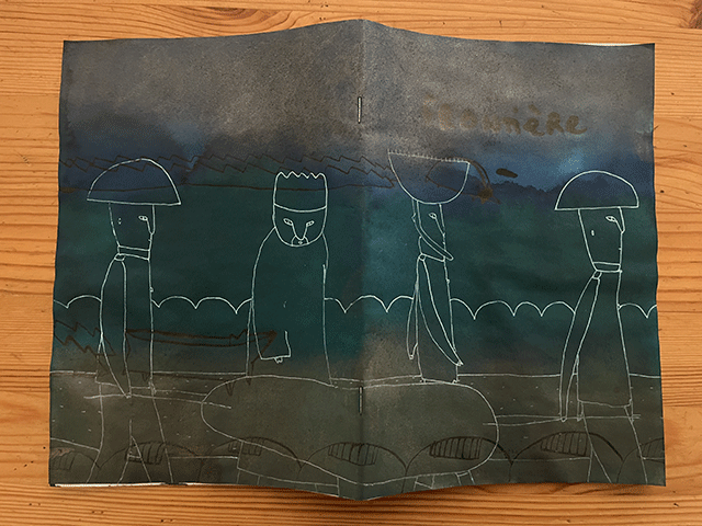 Les couvertures du numéro 7 sont réalisées avec un tapis d’encre ou de craie pastel jaune, réhaussé d’encre de Chine noire, d’encre de couleur émeraude (parfois avec un complément de rouge), et d’encre ou de stylo blanc.