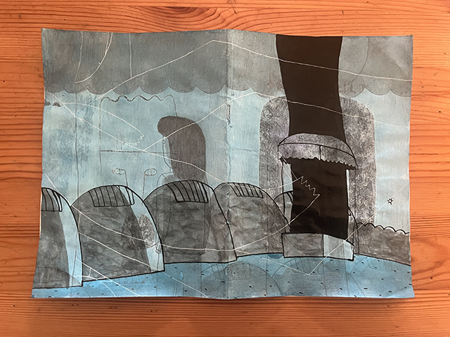 Les couvertures du numéro 8 sont réalisées au crayon à papier, réhaussé d’encre de Chine noire, de stylo Bic bleu et d’encre de Chine blanche.